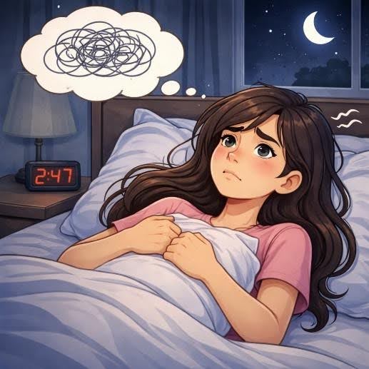 Sleep disturbance is often closely linked with stress and lifestyle imbalance. Racing thoughts, shallow breathing, and excessive screen exposure keep the mind engaged even at night. As a result, the body remains in a semi-alert state, creating a cycle of fatigue, brain fog, and reduced daytime performance.