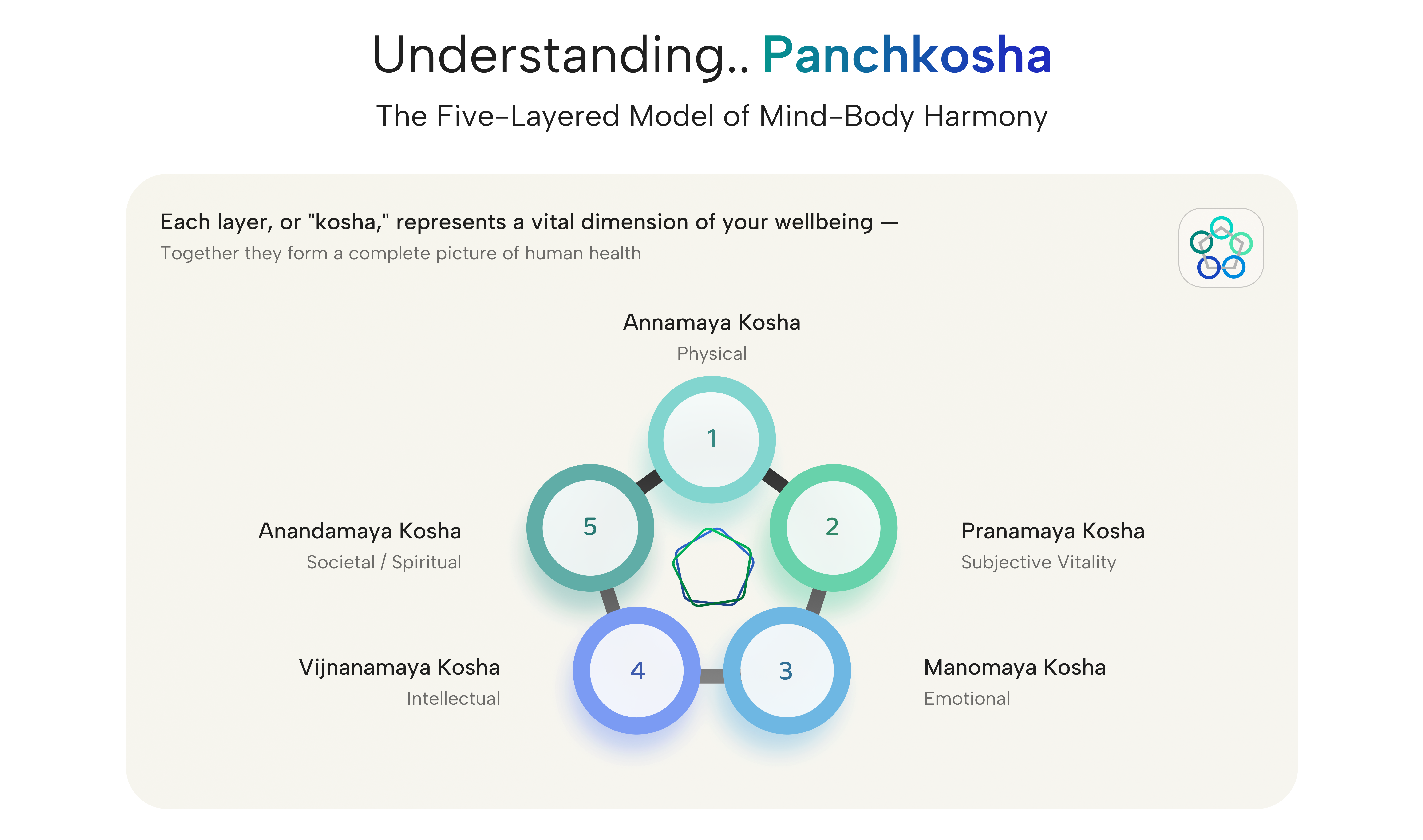 PanchKosha Wellbeing is a pioneering platform designed to provide a an integral approach of wellbeing assessment, insights and interventions by blending contemporary knowledge with the ancient Indian wisdom